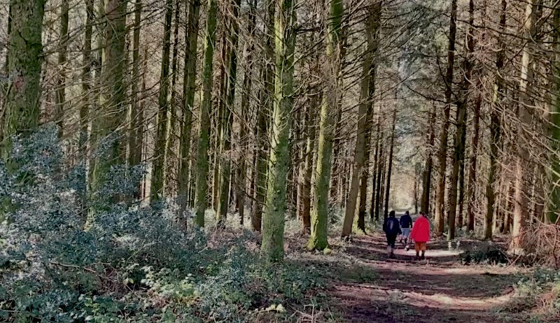 Up ahead, reaching the treeline, our friends consulted their phones. Turning right was clearly the correct choice. Until it plainly wasn’t, and with shared laughter we began retracing our steps. In a small clearing we passed a collection of beehives, the bees silent and secure within their wooden towers. Then, a little further on, an opening in the hedge to allow us back into the wood.
